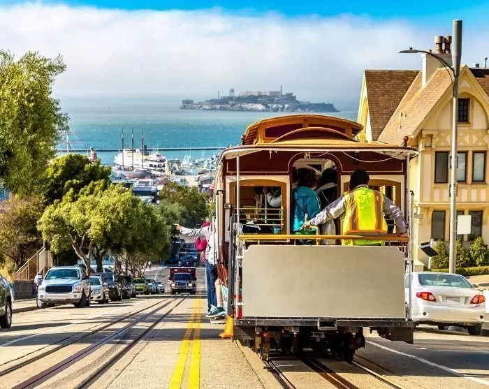 Todennäköisesti heräät aikaisin tässä maailmankolkassa ja olet valmis tutustumaan San Franciscon mutkitteleviin ja jyrkkiin katuihin. Yövyt keskeisellä paikalla lähellä ostospaikkoja, kahviloita ja kuuluisia raitiovaunuja, jotka ovat kuljettaneet ihmisiä kaupungin kukkuloilla vuodesta 1878 lähtien. Voit ostaa joko yhden lipun tai koko päivän lipun kääntöpaikka-asemilta, ja kuuluisan Hyde-Powell-linjan ansiosta pääset helposti Union Squarelta kuuluisalle alueelle, Fisherman’s Wharfille. Jos haluat matkustaa raitiovaunulla aitoon San Fran -tyyliin, katso, saatko seisomapaikan vaunun sivusta ja tunnetko vatsanpohjassasi, kun raitiovaunun vauhti kasvaa alamäessä.