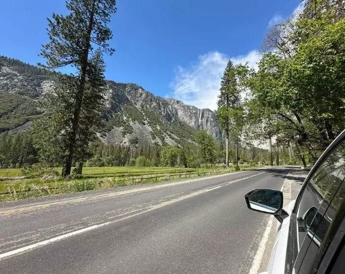 Kun lähestyt puistoa (kautta Arch Rock Entrance), näet, miten kaupunkielämä vaihtuu vähitellen karuihin maisemiin ja lopulta vuoriin: Sierra Nevadan vuoristoon, jossa Yosemite sijaitsee. Viimeisen tunnin ajomatka Yosemite Valleyhin on uskomattoman kaunis pystykallioseinien, kuusineen ja vierellä kuohuvan Merced-riverin ansiosta.