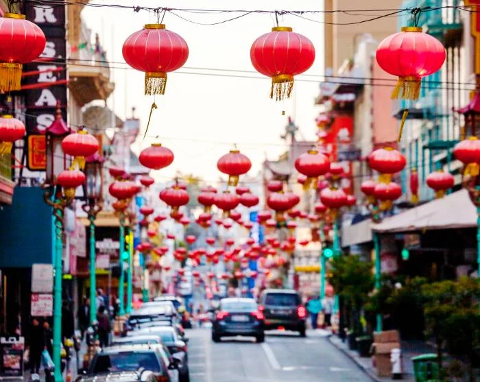 San Franciscon Chinatown on Pohjois-Amerikan vanhin laatuaan ja yksi suurimmista kiinalaisista yhteisöistä Aasian ulkopuolella. Alueella kävellessä näet kirkkaita lyhtyjä, upeita kimonoja ja lohikäärmeitä sekä tunnet pienten ravintoloiden houkuttelevat tuoksut, joissa tarjoillaan taukoamatta dumplingseja ja sushia.