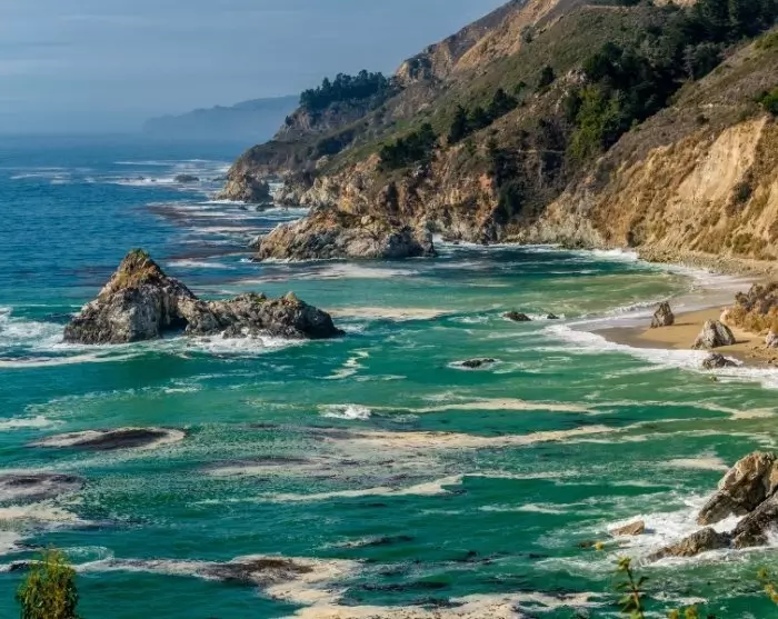 Jos valitset Highway 1:n, pääset ihastelemaan toisella puolella Tyyntämerta ja toisella puolella alati vaihtelevaa kalifornialaista vuoristomaisemaa. Ajomatkan varrella näet Tyynenmeren aaltojen pauhaavan vasten jyrkkiä kallioseinämiä ja bongaat petolintuja, kuuluisia siltoja ja merinorsuyhdyskuntia. Yksi must-see-nähtävyys on McWay Falls -vesiputous Julia Pfeiffer Burns State Parkissa. Jatka sieltä Ragged Pointiin, missä on mukava pitää kahvitauko samalla kun nautit näkymistä Big Surin eteläosaan.