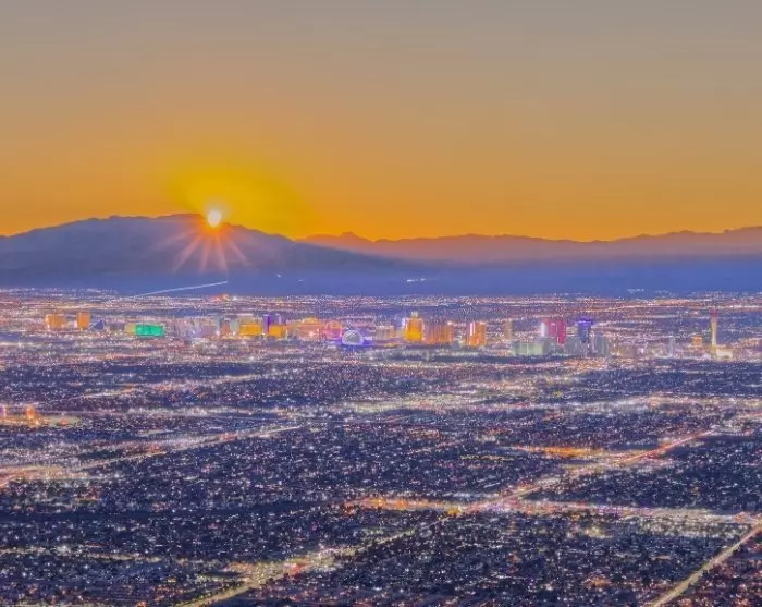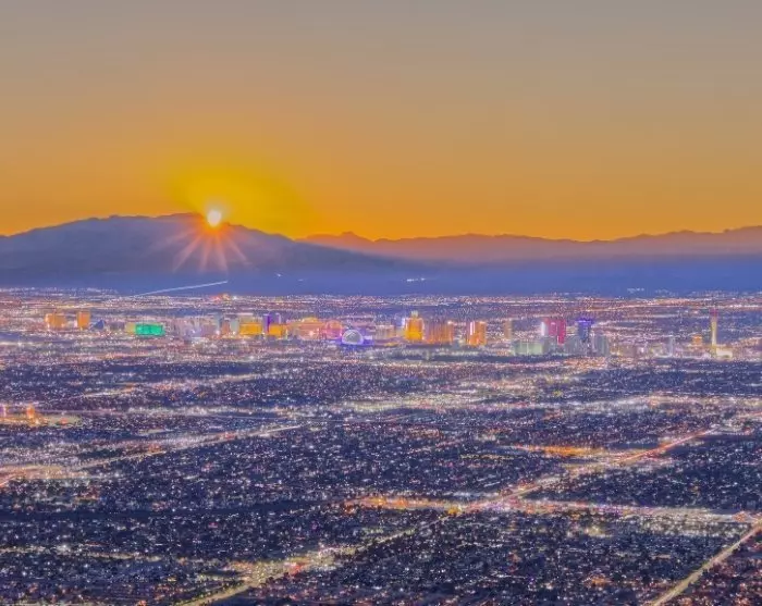 Parin tunnin ajomatkan päässä Barstow’sta huomaat horisontissa ensimmäiset merkit Las Vegasista. Korkeuksiin kohoavat, toinen toistaan erikoisemmat teemahotellirakennukset seisovat vieri vieressä noin 7 kilometrin pituisen Las Vegas Boulevardin eli The Stripin varrella.
