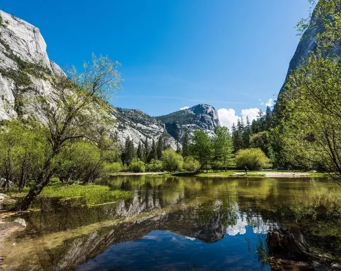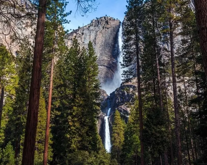 Kansallispuistossa sinua odottavat henkeäsalpaavat vesiputoukset, jotka vyöryvät alas pitkin dramaattisia kalliojyrkänteitä. Yosemitessa on nähtävää ja tekemistä kaikenikäisille ja kaikentasoisia haasteita etsiville, eikä sinun tarvitse kävellä pitkälle nähdäksesi suosittuja luontokohteita. Erinomainen paikka aloittaa on helposti saavutettava Lower Yosemite Fall tai Mirror Lake, jonka pinnasta heijastuvat ympäröivät vuoret. Sopivista reiteistä saat tietoa puiston Welcome Centeristä.