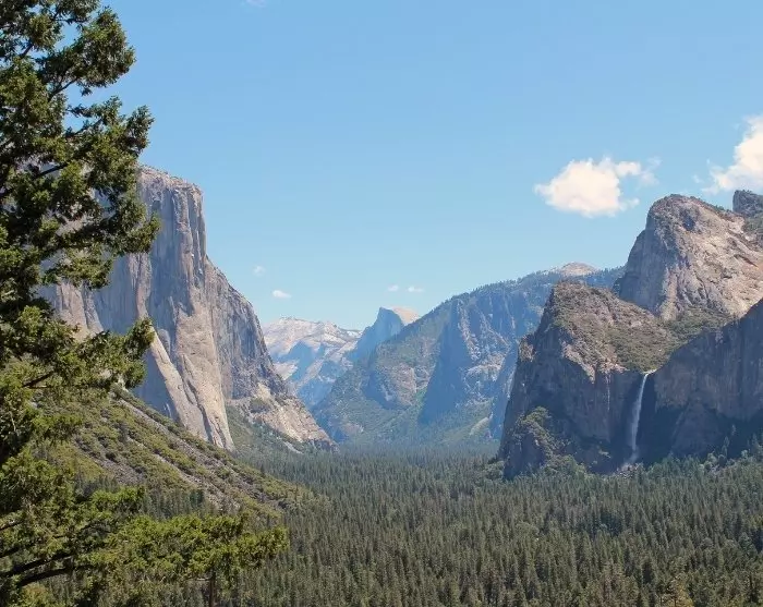 Toinen puiston unohtumattomista näköalapaikoista on Tunnel View, josta avautuvat mahtavat näkymät Yosemiten laaksoon, Bridalveil Falls -putouksille ja kuuluisille El Capitan- ja Half Dome -vuorille.