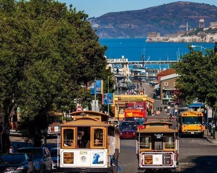 Kaapeliraitiovaunun lisäksi suosittelemme ostamaan lipun hop-on hop off -bussiin, joka vie sinut kaikkiin kaupungin suurimpiin nähtävyyksiin, mukaan lukien Golden Gate -sillan yli (ja takaisin).