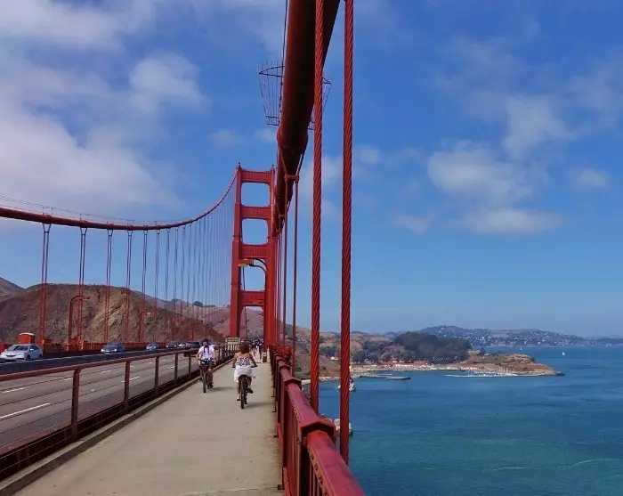 Fisherman’s Wharfin alueelta avautuu upea näkymä legendaariselle punaiselle Golden Gate -riippusillalle, joka vihittiin käyttöön vuonna 1937. Mikään ei kuitenkaan voita sillan yli ajamista ja sen massiivisten rakenteiden ihmettelyä lähietäisyydeltä. Sillan toiselta puolelta avautuvat myös henkeäsalpaavat näkymät kaupungin kattojen yli, puhumattakaan Alcatrazin vankilasaaresta, jossa vuosina 1934–1963 istui useita Amerikan kovimpia rikollisia, kuten gangsteri Al Capone. Voit ylittää sillan myös polkupyörällä, joita on mahdollista vuokrata monista paikoista Fisherman’s Wharfin tienoilla.