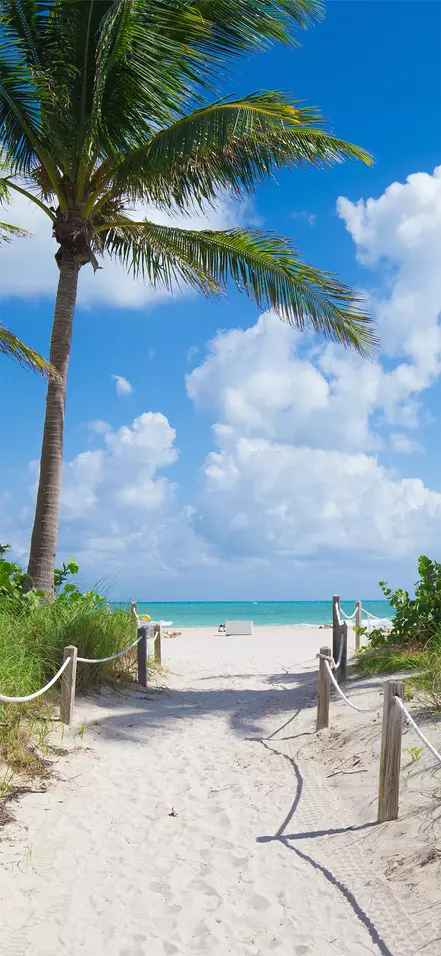 Luonnonympäristö vaihtuu suurkaupunkiympäristöön, kun suuntaat Miami Beachille Everglades Safari Park -safaripuiston jälkeen. Kun olet Miami Beachilla, jätä vuokra-autosi kaupungin toimipisteeseen myöhään iltapäivällä (lisätietoja on voucherissasi). Ota taksi tai Uber hotelliisi, joka ei ole kaukana.