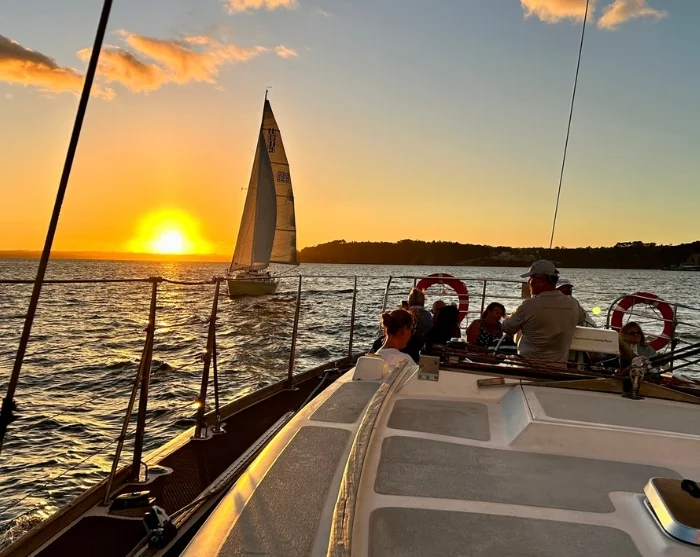 Lähde unohtumattomalle illallisristeilylle, jossa koe “City of Sails” mereltä käsin purjeveneen kyydistä auringon laskeutuessa Aucklandin ylle.