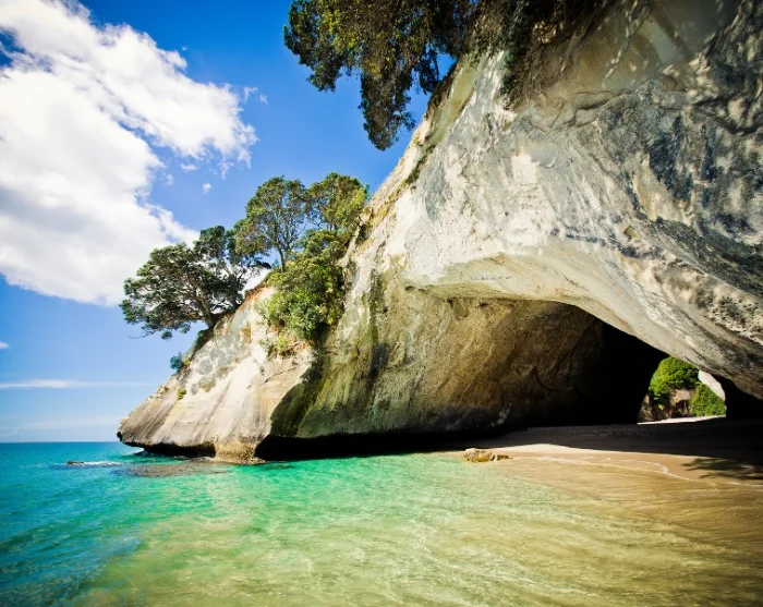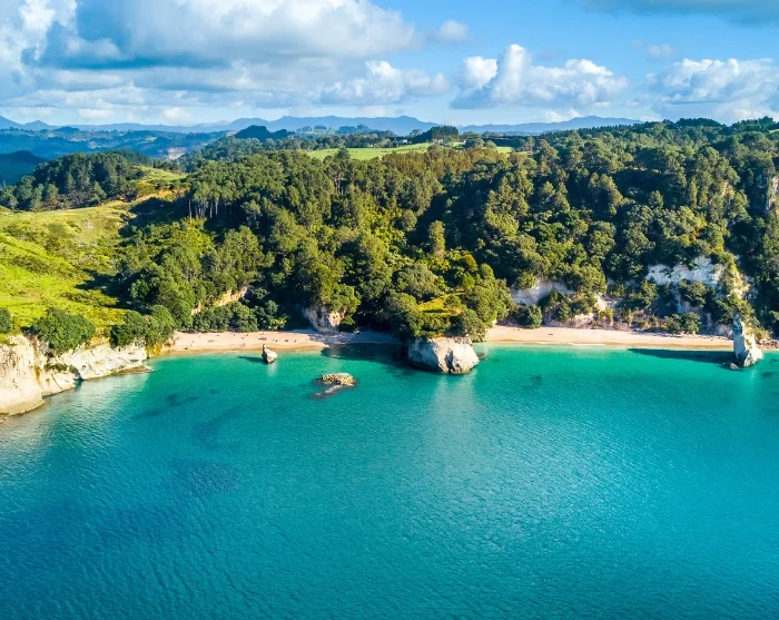 *Jos vierailu Hot Water Beachilla ei ole mahdollinen vuorovesien takia, matkasuunnitelmaa muokataan hieman. Vaellus Cathedral Coveen tapahtuu ennen lounasta, ja iltapäivällä vierailet toisilla kauniilla rannoilla, kuten Te Pare, Cooks Beach ja Lonely Bay.