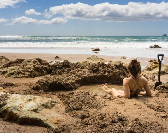 Jos vuorovesi sallii, pysähdytte Hot Water Beachille, jossa voit kaivaa hiekkaan oman geotermisen altaan ja rentoutua. Älä unohda uima-asua ja vaihtovaatteita tätä ainutlaatuista kokemusta varten!*