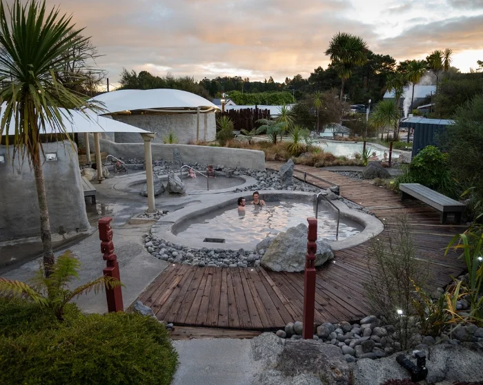 Patikkaretken jälkeen sinua odottaa ainutlaatuinen spa-elämys Hell’s Gatesin luonnollisissa mutakylvyissä ja kuumissa lähteissä. Paikalliset maorit ovat hyödyntäneet alueen geotermisen mudan ja rikkipitoisen mineraaliveden parantavia ominaisuuksia jo yli 800 vuoden ajan. Levitä ensin iholle kerros mutaa, joka avaa ja puhdistaa ihohuokosia, jonka jälkeen voit kuoria ja puhdistaa ihon rikkipitoisessa vedessä. Tämän rauhoittavan kokemuksen jälkeen tunnet olosi uudestisyntyneeksi!