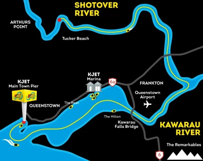 Matka alkaa Queenstown Pieriltä, missä nouset tehokkaan jetboatin eli jettiveneen kyytiin. Tiedossa on tunnin pituinen seikkailu Wakatipu-järvellä ja Kawarau- ja Shotover-joilla. Matkan varrella vene saavuttaa lähes 95 km:n tuntinopeuden ja suorittaa hurjia 360°-käännöksiä ja näppäriä manööverejä matalissa vesissä, joissa veneen alla on usein vain muutama senttimetri vettä. Kyseessä on tekninen saavutus ja aistielämys samassa paketissa, ja takaamme, että vatsassasi pörräävät perhoset ja hymy nousee huulillesi – etkä välty kastumiseltakaan retken aikana.