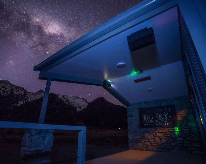 Sen jälkeen siirrytään lyhyen matkan päässä ulkona sijaitsevalle valosaasteettomalle tähtientarkkailualueelle, missä voit nauttia henkeäsalpaavista näköaloista eteläisen pallonpuoliskon yötaivaalle. Voit katsella tähtiä paljaalla silmällä, tehokkailla kiikareilla ja edistyneillä kaukoputkilla. Näet muun muassa Linnunradan ja erilaisia tähtikuvioita, kuten Uuden-Seelannin lippua koristavan Etelän ristin, sekä planeettoja, kuita ja kaukaisia galakseja.