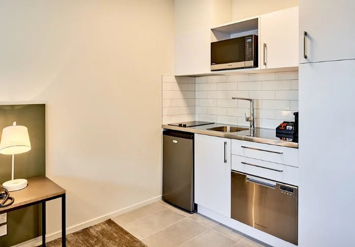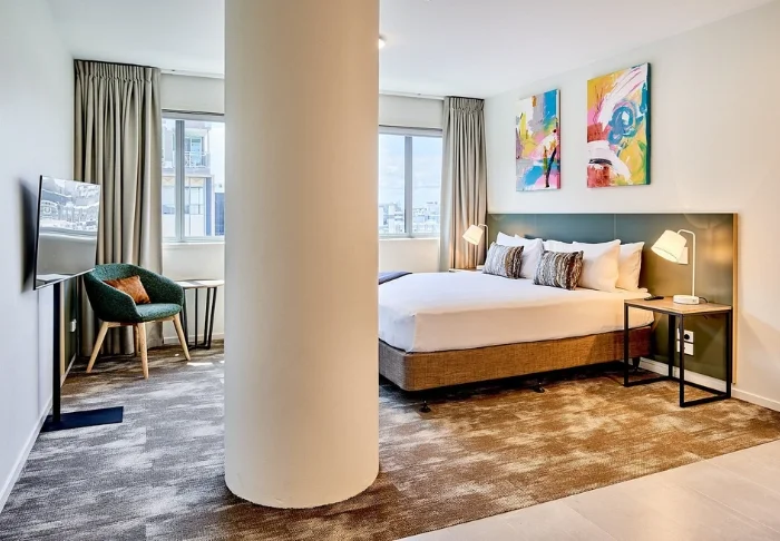 Huoneistohotelli sijaitsee alkuperäisessä rakennuksessa, minkä vuoksi mikään huone ei ole täysin samanlainen. Tarjolla on yhteensä 75 modernia huonetta eri kokoluokissa, kompakteista studioista tilaviin huoneistoihin, jotka sopivat erinomaisesti perheille tai ryhmille. Huoneet on sisustettu tyylikkäästi ja niissä on pieni keittiö, jossa on muun muassa espressokone, liesi, mikroaaltouuni ja keittiövälineet, joten voit halutessasi valmistaa ateriat itse. Lisäksi huoneissa on oma kylpyhuone, tallelokero, ilmainen WiFi, Smart TV, ilmastointi ja kaksinkertaiset ikkunat, jotka takaavat hyvät yöunet – jopa kaupungin sydämessä.