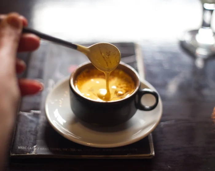 Löydätte itse lähtöpaikan, Hidden Gem Café -kahvilaan, joka on kätketty ja ympäristöystävällinen kahvibaari. Täällä saat lyhyen esittelyn ja näet, kuinka vietnamilainen ikoninen egg coffee valmistetaan.
