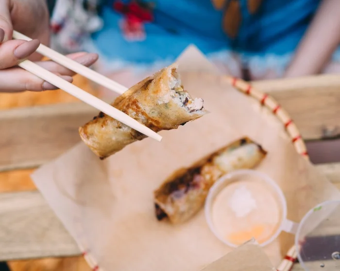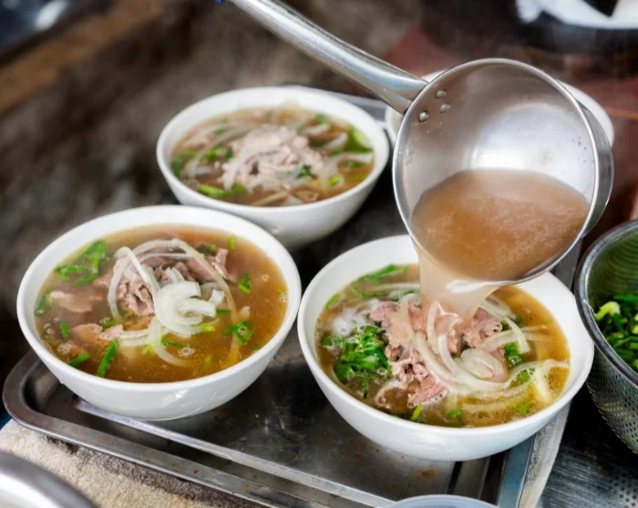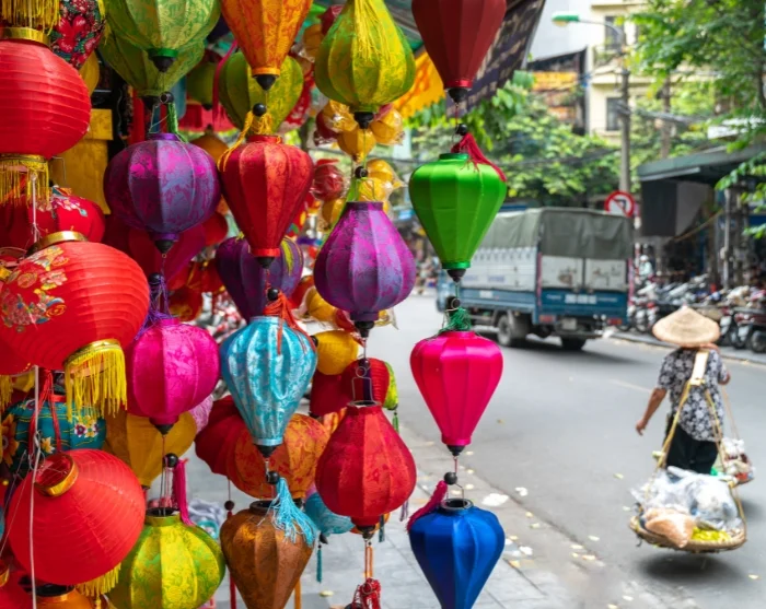 Kierros jatkuu kapeilla kujilla, joilla pääset maistamaan paikallisia herkkuja: rapeita nem ran (kevätrullia), maailmankuulua phota (nuudelikeittoa), makeita banh ran (uppopaistettuja riisipalleroita) ja rapeiksi paistettuja kanankoipia. Matkan varrella kävelet Hang Ma -kadulla, jossa tutustut paikalliseen arkeen ja kulttuuriin, ennen kuin saavut tunnelmalliselle bambukulmanukselle – pienelle kadunkulmalle, jota elävöittävät bambutuotteet ja paikallisten vilkas elämä.
