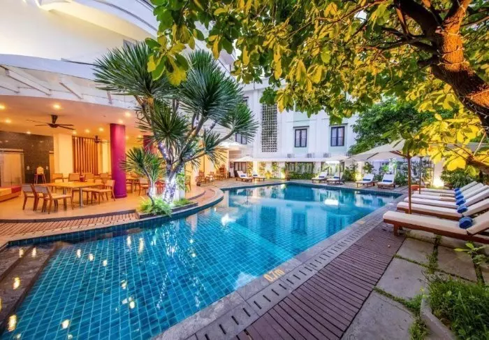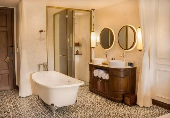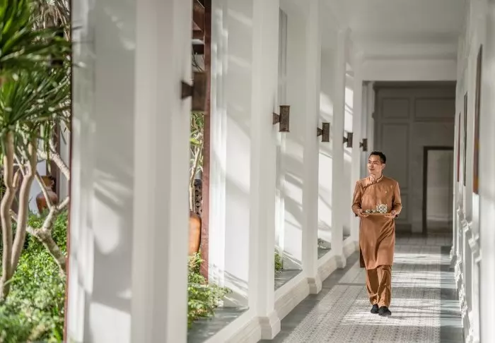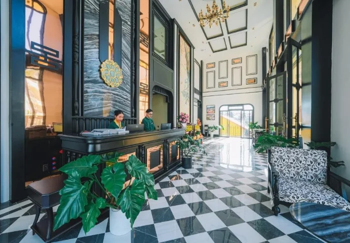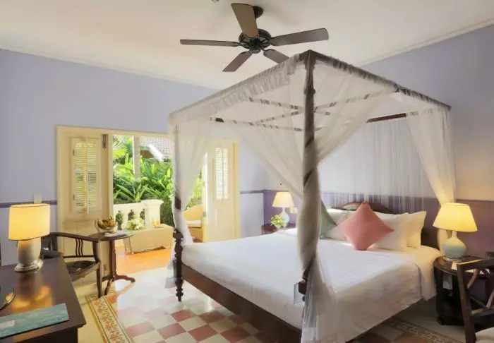 Tämän ainutlaatuisen hotellin estetiikka on siirtomaatyylin inspiroimaa, ja kun astut sisään aulaan, on kuin astuisit samassa hetkessä ajassa taaksepäin vanhaan Indokiinaan. Romanttisen viehättävää tyyliä tasapainottavat modernit elementit, ja hotellin vaaleita seiniä koristaa yhteensä 250 paikallisten taiteilijoiden maalaamaa öljyväriteosta.