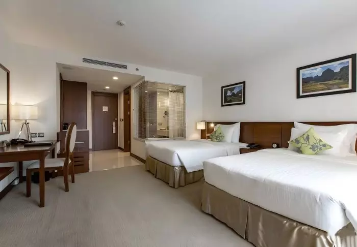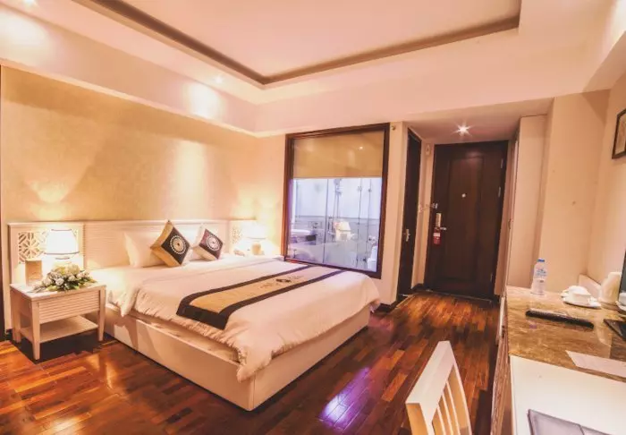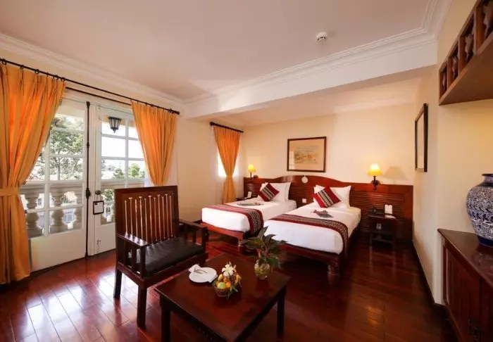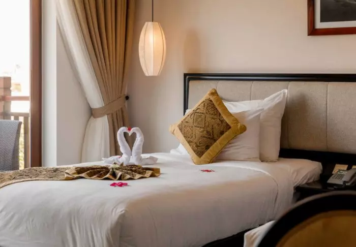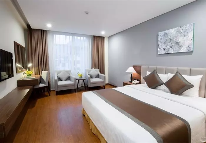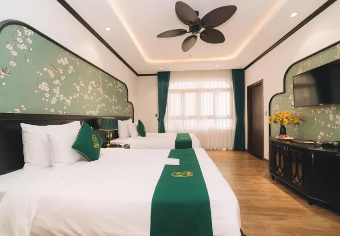 Majoitut lähtökohtaisesti superior-huoneessa, jossa modernit mukavuudet yhdistyvät vietnamilaiseen eleganssiin. Huoneissa on suuret ikkunat, jotka tuovat luonnonvaloa sisään, puisia yksityiskohtia sekä klassisia huonekaluja, jotka luovat lämpimän ja kutsuvan tunnelman. Erityistä huomiota ansaitsevat seinäpaneelit, joissa kukkivat kirsikankukat tuovat tilaan paikallista ja taiteellista vivahdetta. Kaikissa huoneissa on parisänky tai kaksi erillistä vuodetta, jääkaappi, TV, tallelokero, vedenkeitin, ilmastointi sekä oma kylpyhuone, jossa on kylpytuotteita ja hiustenkuivaaja. Huolellisesti suunnitellut yksityiskohdat takaavat rauhallisen levähdyspaikan aktiivisen päivän jälkeen.
