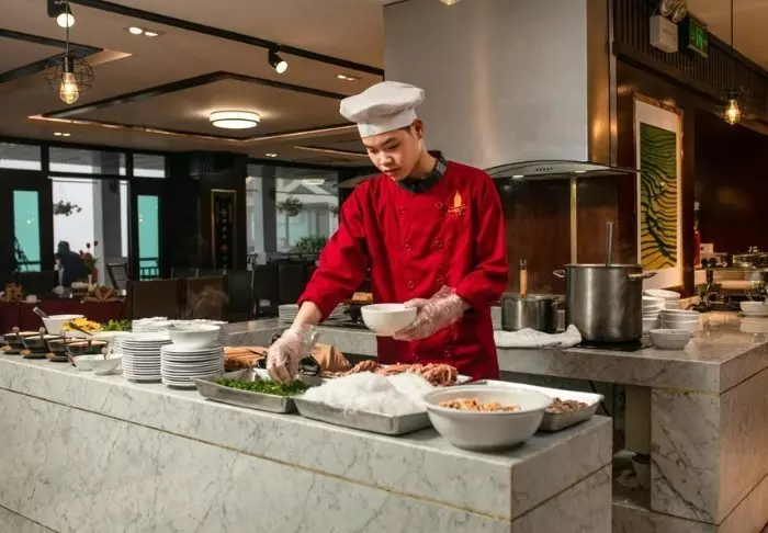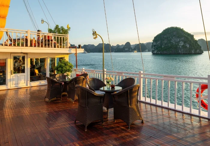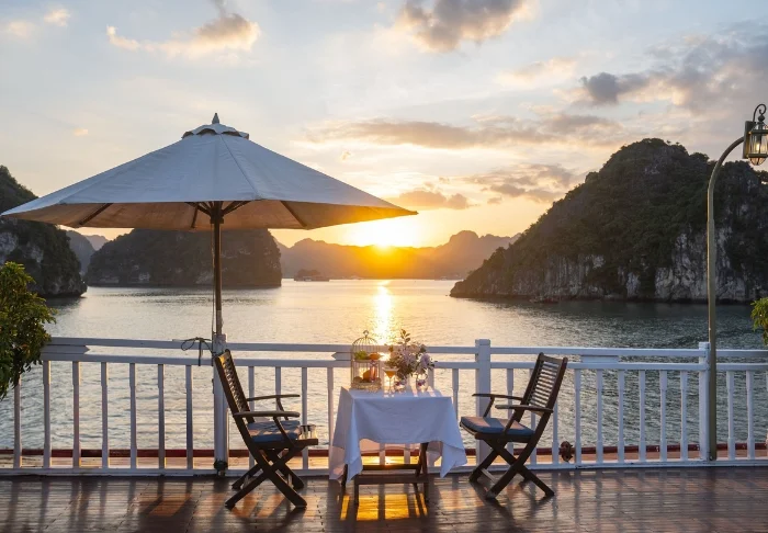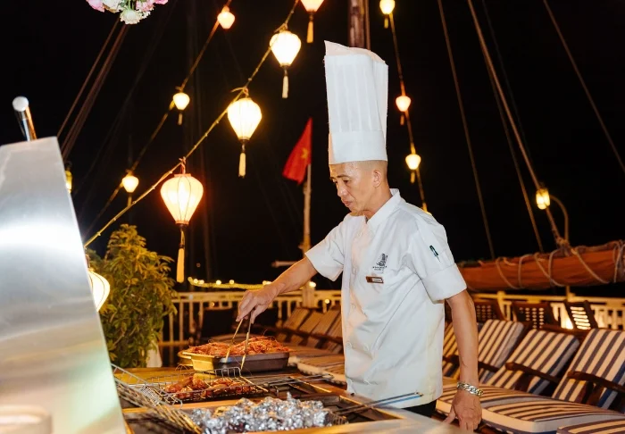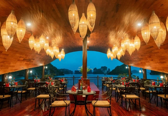 Ravintolassa voit nauttia sekä vietnamilaisen että kansainvälisen keittiön herkullisia annoksia, jotka on valmistettu laadukkaista raaka-aineista. Tunnelma on ylellinen ja illallinen kannella auringonlaskun aikaan jää varmasti yhdeksi matkan ikimuistoisista kohokohdista.