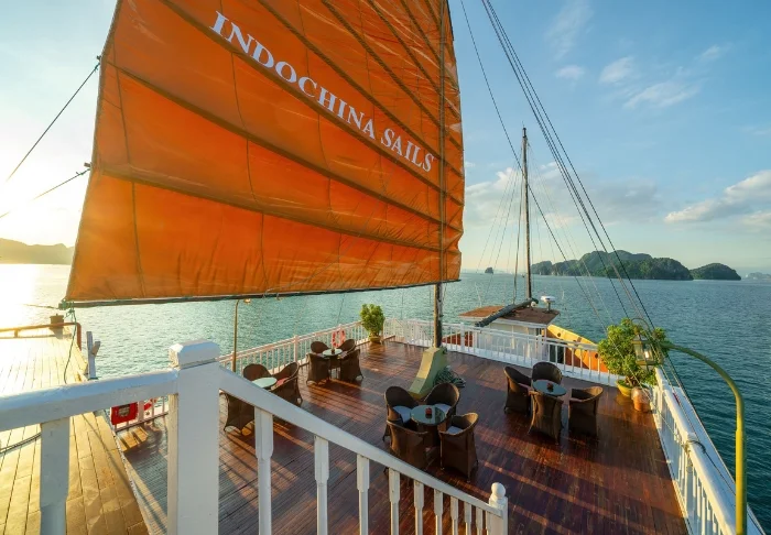 Indochina Sails vie sinut Halonginlahden rauhallisille vesille. Risteilet majesteettisten kalkkikivimuodostelmien ja vehreiden pikkusaarten lomassa. Risteily yhdistää perinteisen puualuksen viehätyksen nykyaikaisiin mukavuuksiin. Indochina Sails nostaa Halonginlahden risteilykokemuksen uudelle tasolle. Tyylikkäällä 23 hytin puulaivalla tunnet heti ainutlaatuisen ja ylellisen tunnelman, jossa palvelu, yksityiskohdat ja ilmapiiri kulkevat käsi kädessä. Laiva on jo vuosikymmenten ajan ollut yksi lahden arvostetuimmista ja se tunnetaan korkeasta laadustaan.