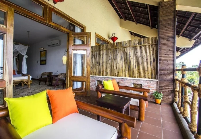 Tyylikkäästi sisustetuissa huoneissa on vaaleat seinät ja kauniit tummat puukalusteet, jotka ilmentävät vietnamilaista estetiikkaa. Kaikissa huoneissa on WiFi, ilmastointi, tallelokero, minibaari, televisio, puhelin ja vedenkeitin, jolla voit valmistaa kupillisen kuumaa kahvia tai teetä. Kylpyhuoneessa on kylpytuotteita, hiustenkuivaaja, kylpytakit ja tohvelit. Omalta parvekkeelta tai terassilta voit ihailla upeita näkymiä ympäröiville riisipelloille ja vuorille.