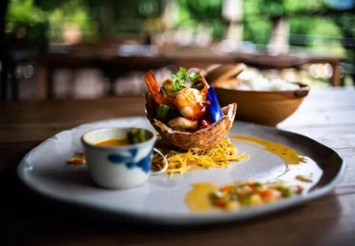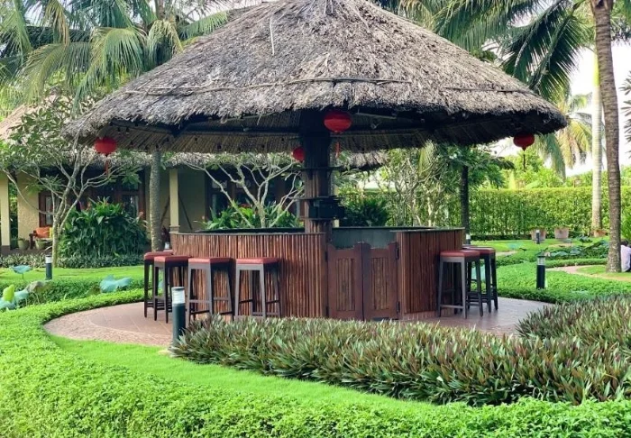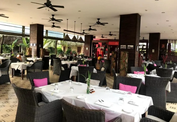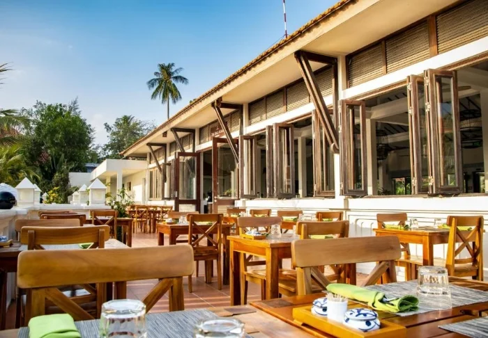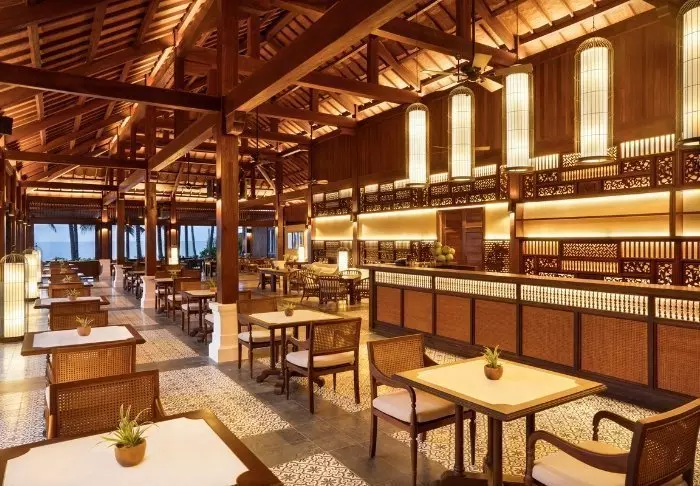 Ravintolasta ja baarista on näköala uima-altaalle ja rannalle. Ruokalistalla on sekä vietnamilaista että länsimaista ruokaa, ja kestävyyteen panostava ravintola käyttää mahdollisuuksien mukaan paikallisia raaka-aineita. Tarjolla on jokaiselle jotakin – myös kasvissyöjille ja vegaaneille.