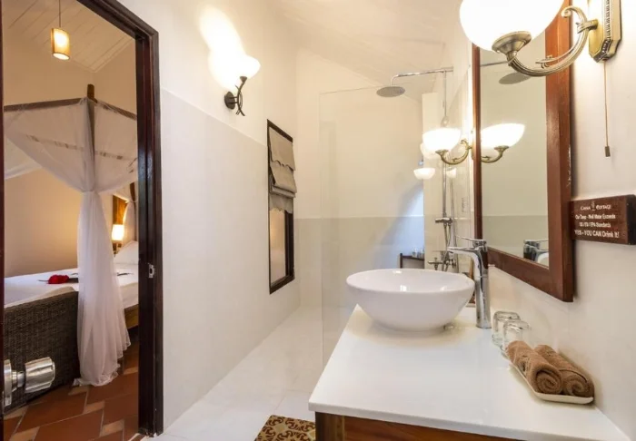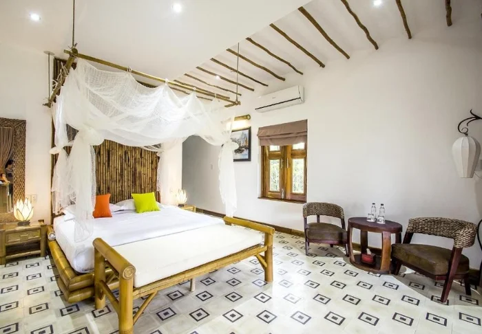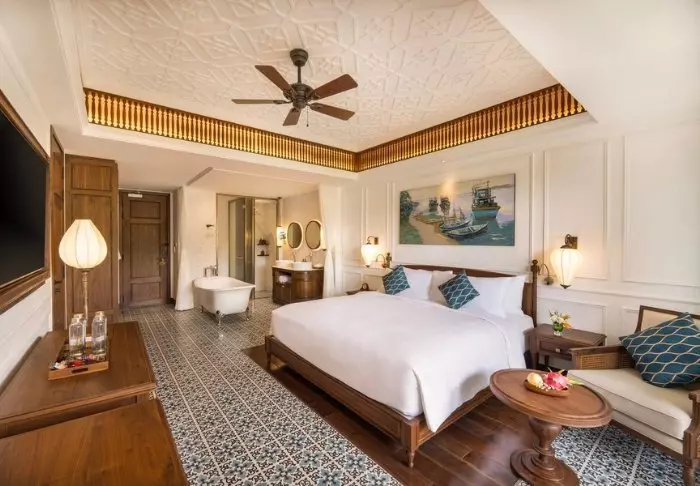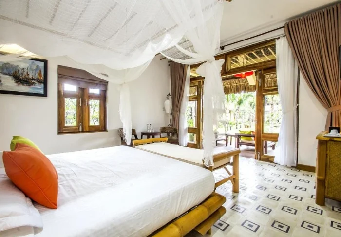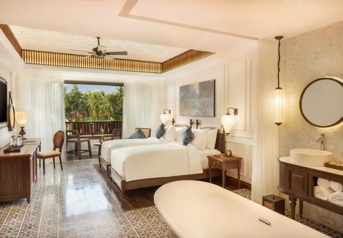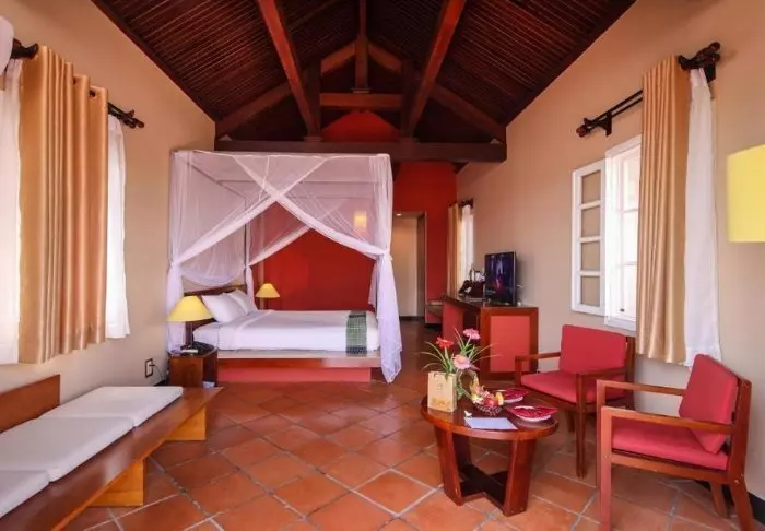 Majoitut lähtökohtaisesti Superior-huoneessa. Huoneet on sisustettu vietnamilaiseen tyyliin tummilla puukalusteilla, jotka luovat lämmintä ja viihtyisää tunnelmaa. Huoneissa on nykyaikaiset mukavuudet, kuten ilmastointi, WiFi, minibaari, kahvi- ja teetarvikkeet, tallelokero ja taulutelevisio, joten täällä on kaikki tarvittava mukavaan oleskeluun. Kylpyhuoneesta löytyvät suihku, kylpytakit, hiustenkuivaaja ja kylpytuotteita.