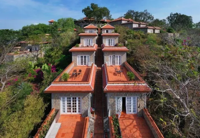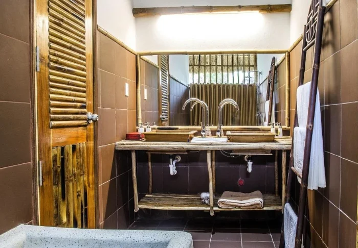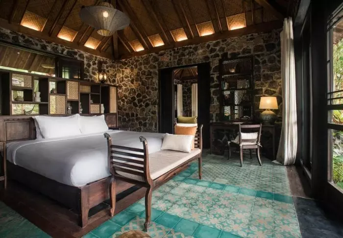 Kaikki lomakeskuksen 19 bungalowia on jaettu kahteen ylelliseen ja tilavaan huoneeseen. Molemmissa on oma kylpyhuone ja terassi, josta on näköala puutarhaan. Huoneet on sisustettu tyylikkäästi käyttäen paikallisia puulajeja, kiveä, keramiikkaa ja laattoja, joiden perinteiset kuviot luovat hienostunutta tunnelmaa.