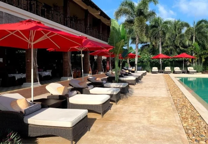 Resortin uima-allas sijaitsee jokinäkymän äärellä, ja sen ympärillä on aurinkotuoleja ja -varjoja. Oasis Spa tarjoaa hemmottelevia hoitoja lummelampien ja hedelmäpuiden keskellä.