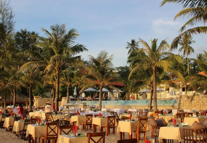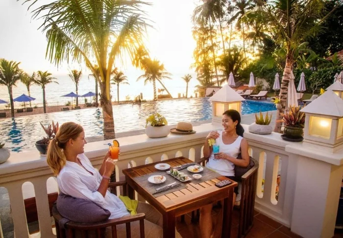 Resortin pääravintola Le Café tarjoaa herkullisen aamiaisbuffetin ja a la carte -listan lounas- ja illallisaikaan. Valinnanvaraa riittää kansainvälisistä annoksista autenttiseen vietnamilaiseen ruokaan. Aulabaari Le Salonissa voit nauttia teetä, kahvia, viiniä ja cocktaileja. Allasbaari La Piscinen valikoimaan kuuluvat myös raikkaat juomat ja pikkupurtavat, kun taas rantabaarissa on tarjolla kevyitä lounasruokia. Täällä voit nauttia vaikka pienen iltapäivädrinkin ja kuunnella aaltojen rauhoittavaa liplatusta rantaa vasten.