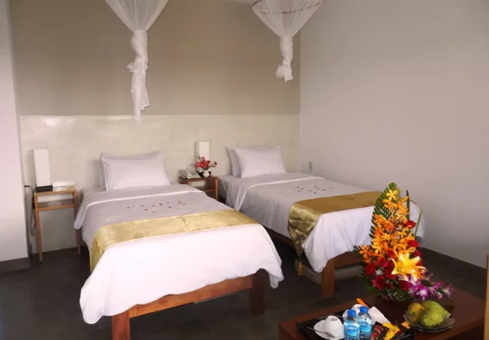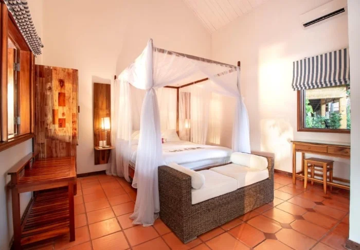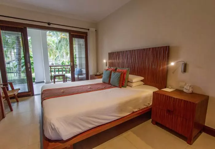 Majoitut Garden Cottage -huoneessa, jonne kuljetaan vehreän hotellipuutarhan pieniä polkuja pitkin. Terassilta avautuu näkymä omaan pieneen puutarhaan, jossa saatat nähdä kypsiä passionhedelmiä tai värikkäitä orkideoita ja hibiskuksia. Huone on sisustettu yksinkertaisesti: kivilaattalattiat ja suuret ikkunat päästävät luonnonvalon sisään. Lisäksi mukavuuksiin kuuluu vuode hyttysverkolla, ilmastointi ja kattotuuletin, WiFi, minibaari, kahvi- ja teetarvikkeet, tallelokero sekä kylpyhuone sadesuihkulla, hiustenkuivaajalla ja kylpytuotteilla – kaikki, mitä tarvitset rentouttavaan lomaan.