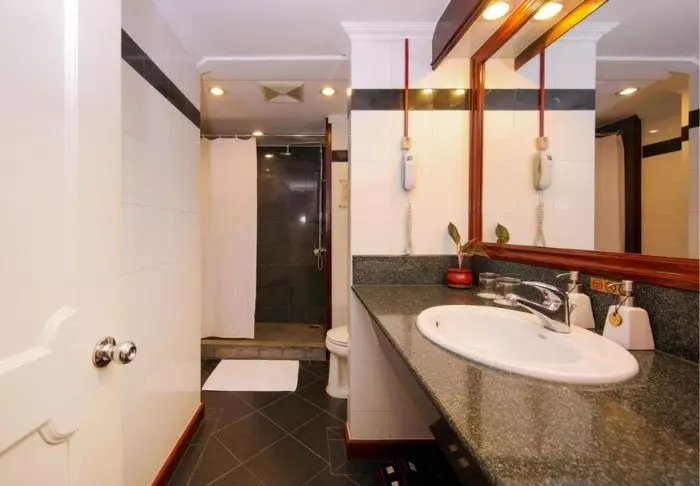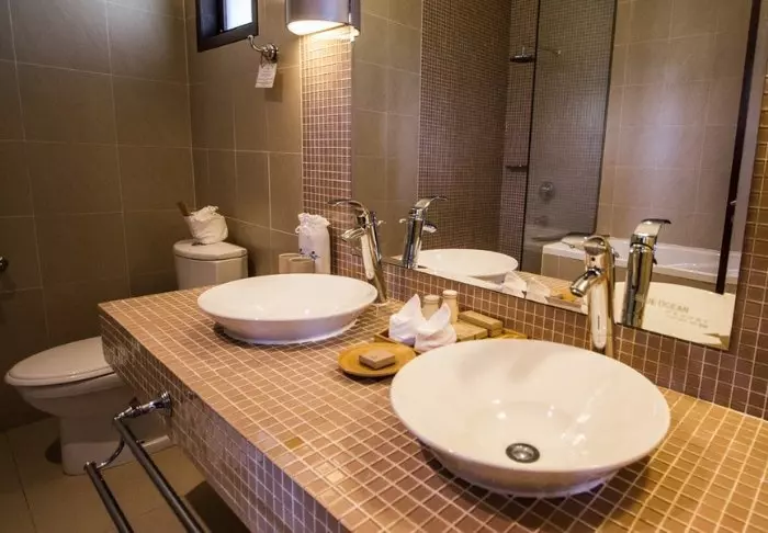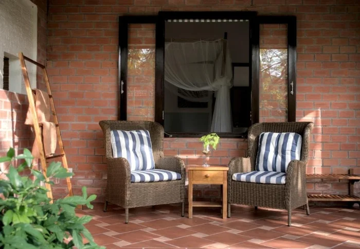 Luonnollisen rustiikki tyyli näkyy myös tilavien, vähintään 70 m² kokoisten huoneiden sisustuksessa. Kaikissa huoneissa on WiFi, ilmastointi, kattotuuletin, minibaari, tallelokero ja ihanan iso kylpyhuone, jossa on hiustenkuivaaja, kylpytakit sekä suihku ja kylpyamme. Terassilla on mukava istua ja nauttia rauhasta ja vehreästä ympäristöstä.