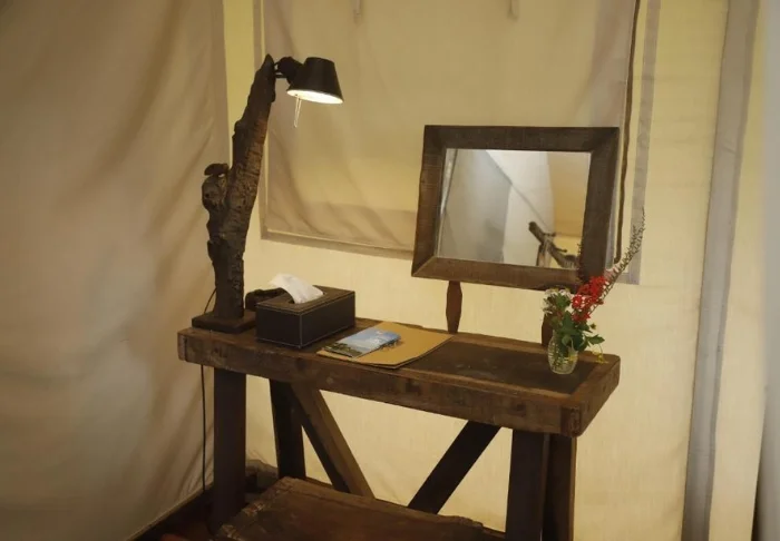 Teltat sijaitsevat vehreässä ympäristössä. Asut tilavassa Lakeview Tent -teltassa, jotka on rakennettu paaluille ja sisustettu harkitun yksinkertaisesti. Jokainen teltta on 32 m², ja siinä on oma veranta, sekä joko parivuode tai kaksi yhdistettävää erillistä vuodetta. Mukavuuksiin kuuluvat ilmastointi ja tuuletin, pullotettua lähdevettä, teetä ja kahvia sekä käytännön tarvikkeet kuten taskulamppu, tossut, sateenvarjo ja hiustenkuivaaja. Teltassa on oma kylpyhuone, jossa on suihku ja WC. Verannalla on käsintehty pöytä ja tuolit – täydellinen paikka rauhallisille aamuille järvimaisemissa. Näkymät järvelle ja ympäröivä luonto ovat itsessään jo elämys. Täällä tunnet aidosti olevasi keskellä luontoa.