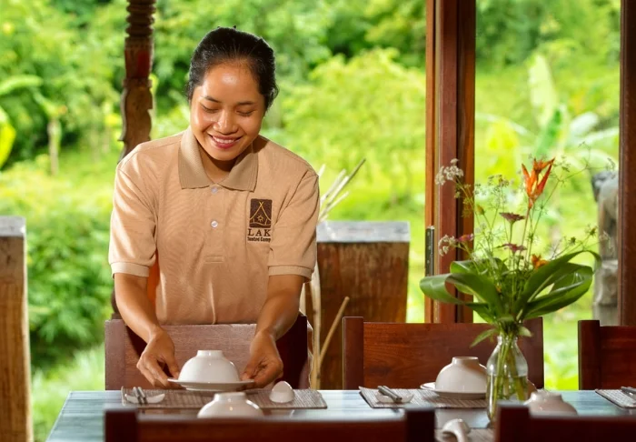 Lak Tented Camp on syntynyt tiiviissä yhteistyössä paikallisten kanssa, ja sen toiminnasta huolehtivat pitkälti M’nong-vähemmistöön kuuluvat ihmiset lähikylistä. He ovat lämpimiä, vieraanvaraisia ja aidosti kiinnostuneita vieraista. Monelle heidän ystävällisyytensä jää yhdeksi matkan unohtumattomimmista muistoista. Palvelu ei ole välttämättä viimeisen päälle hiottua, mutta halu oppia ja kehittyä on suuri. Sinut kohdataan aidolla kiinnostuksella. Jos tarjoat vaikka pienen englannin oppitunnin, saatat vastalahjaksi oppia muutaman sanan m’nongin kielellä.