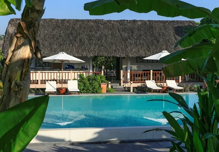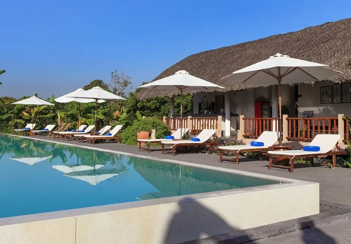 Päivän seikkailujen jälkeen voit pulahtaa uima-altaaseen, josta on näköala riisipelloille, tai etsiä varjoa palmujen alta ja uppoutua hyvään kirjaan.