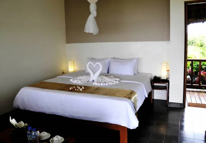 Majoitut lähtökohtaisesti deluxe bungalowissa, joka on rakennettu paalujen päälle. Huoneet on sisustettu yksinkertaisesti, ja niissä on laattalattiat, tummat puukalusteet ja upeat isot ikkunat. Bungalowissa on ilmastointi, WiFi, televisio, minibaari, tallelokero ja vedenkeitin. Kylpyhuoneesta löytyy suihku ja hiustenkuivaaja. Omalla parvekkeella on mukava istua, juoda teetä tai kahvia ja nauttia näkymistä riisipelloille ja vuorille.