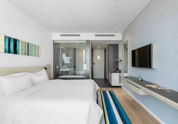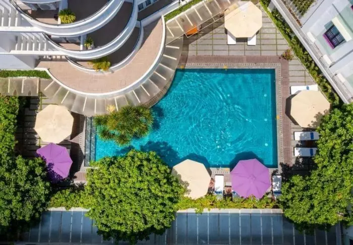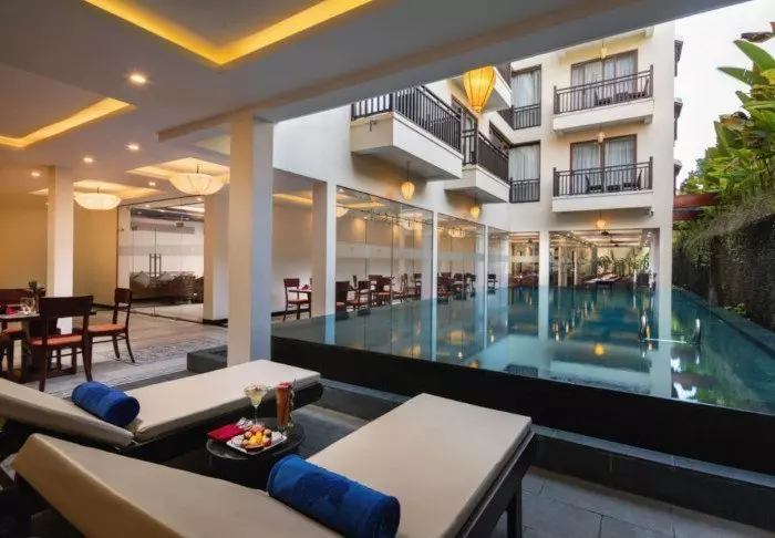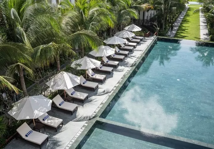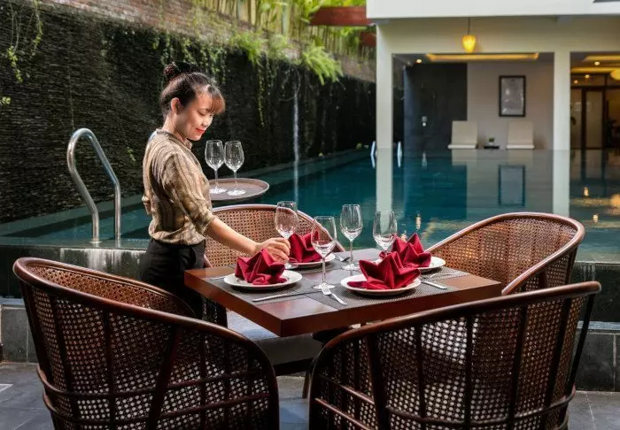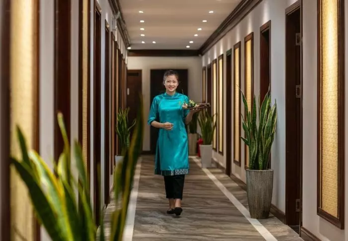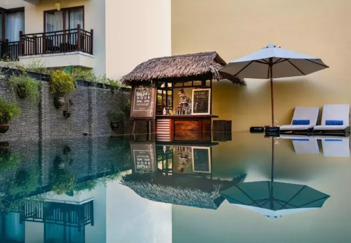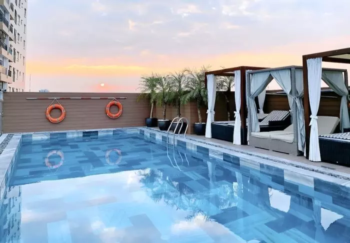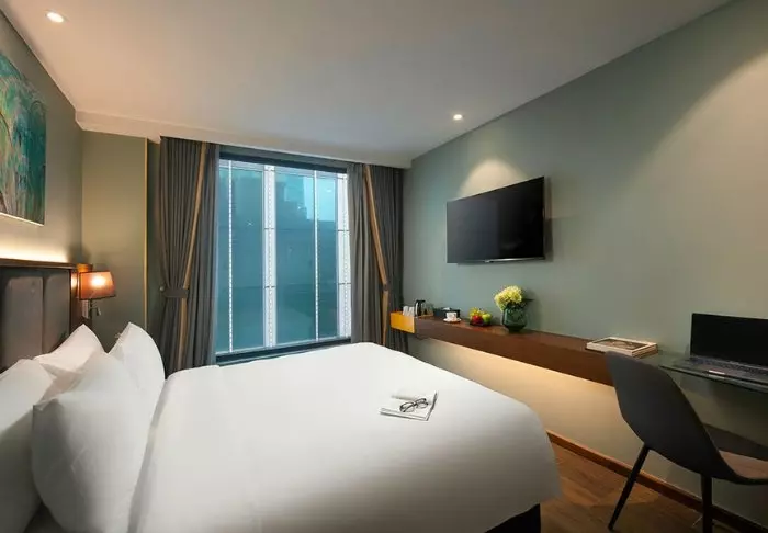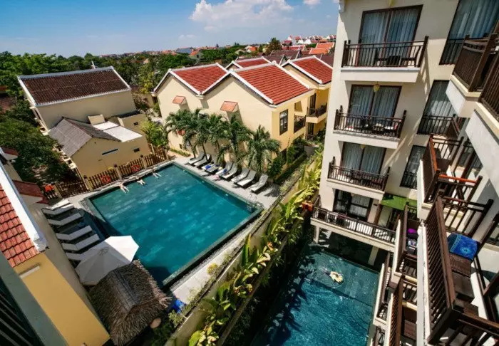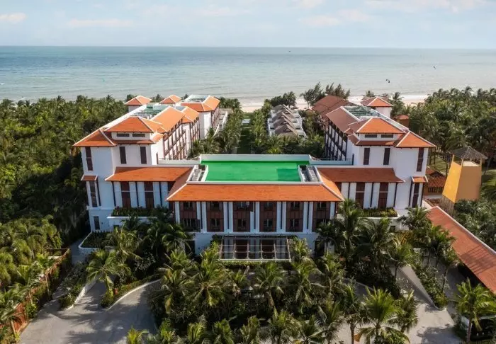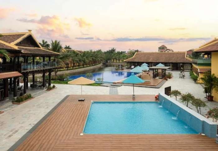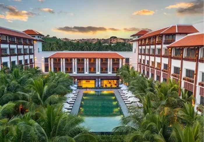 Hotelli yhdistää modernin designin vietnamilaisiin elementteihin ja tarjoaa kutsuvan ja tyylikkään ympäristön korkealaatuiseen majoittumiseen kaupungin keskustan ulkopuolella.
