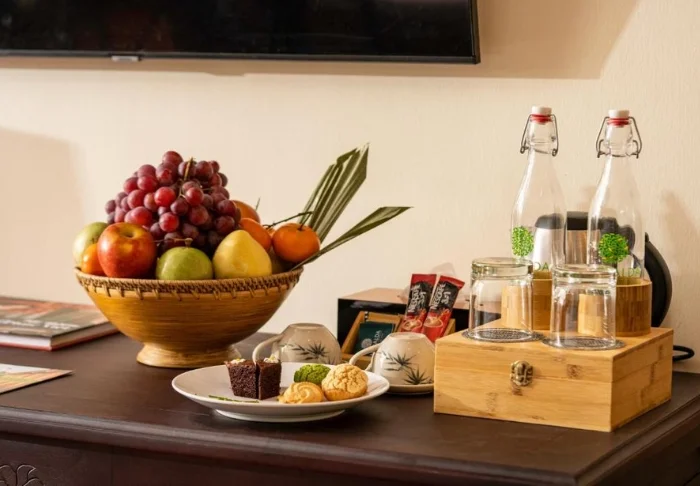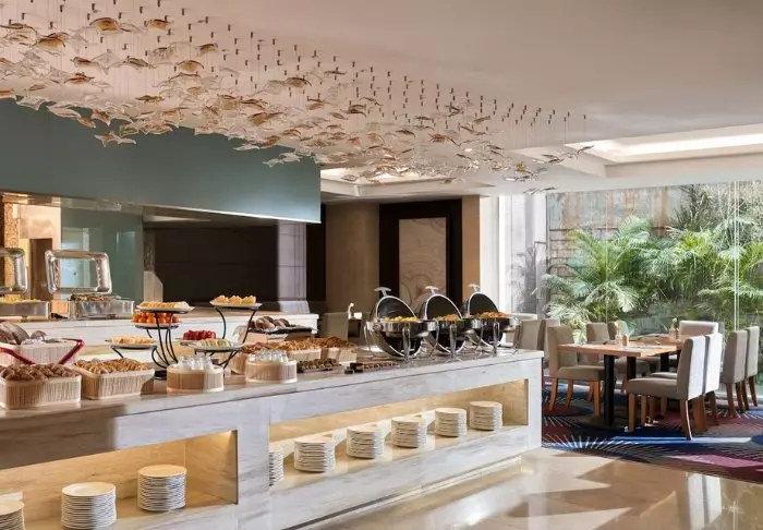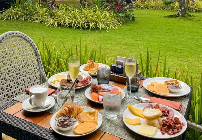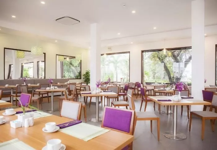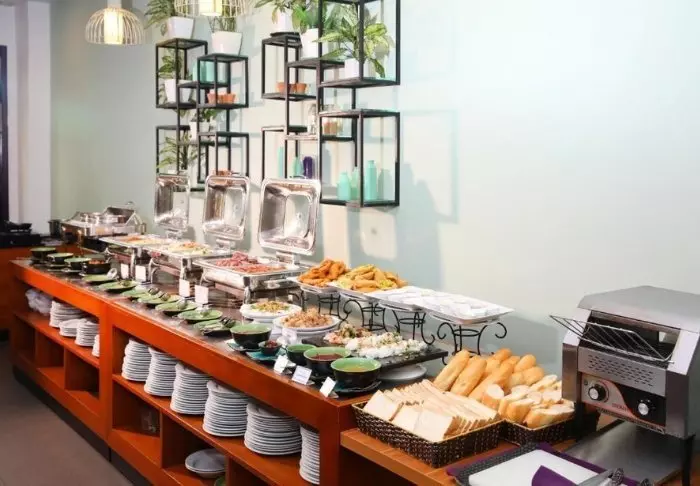 Aamiainen tarjoillaan hotellin ravintolassa rennossa ympäristössä. Tarjolla on sekä continental että aasialaisia vaihtoehtoja, muun muassa tuoreita hedelmiä, leivonnaisia, pannukakkuja ja mehuja.