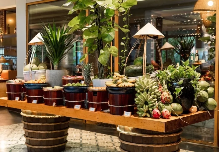 Hotellin Mekong Medley Restaurant tarjoilee päivittäin aamiaisen, lounaan ja illallisen buffetpöydästä. Tarjoilla on lisäksi à la carte -annoksia, joissa yhdistyvät perinteiset Mekongin alueen herkut ja kansainväliset suosikit. Erityisenä lisänä resortista löytyy oma European Bakery & Dessert Corner, jossa leivotaan päivittäin tuoretta leipää, ranskalaisia piiraita ja herkullisia jälkiruokia.