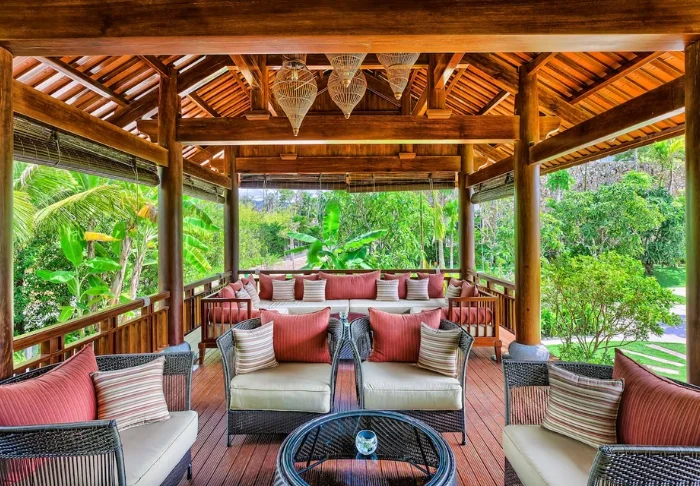 Täällä voit rentoutua trooppisissa bambumökeissä ja nauttia upeista näkymistä riisiterasseille, kauniiseen puutarhaan ja mahtaville vuorille. Samasta näköalasta voit nauttia myös syödessäsi aamiaiasta omalla parvekkeella tai keskuksen ulkoilmaravintolassa.