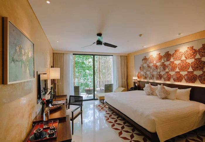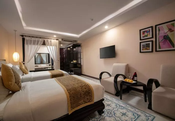 Majoitut lähtökohtaisesti Deluxe-huoneessa ensimmäisessä kerroksessa. Sisustus on moderniin vietnamilaiseen tyyliin, jossa yhdistyy kauniit mosaiikkiyksityiskohdat ja rauhallisine sävyt. Huoneessa on joko king size -vuode tai erilliset vuoteet, ilmastointi, minibaari, tee- ja kahvinvalmistusvälineet sekä WiFi. Kylpyhuoneessa on kylpytuotteet ja sadesuihku. Yksityiseltä parvekkeelta avautuu näkymä hotellin vehreälle etupihalle.