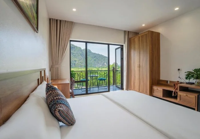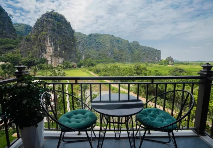 Tam Coc Garden Resort on pieni ja kodikas resort, jossa on vain 16 huonetta. Kaikki huoneet on sisustettu viehättävän rustiikkiseen tyyliin, ja ne sointuvat täydellisesti ympäristöönsä, koska rakennusmateriaaleina on käytetty puuta, kiveä ja bambua. Mukavuuksiin kuuluvat ilmastointi, WiFi, minibaari, hyönteisverkko, tallelokero ja joogamatot sekä tarvikkeet teen ja kahvin valmistukseen. Kylpyhuoneessa on kylpyamme ja sadesuihku sekä ilmaisia kylpytuotteita, kylpytakit, tohvelit ja hiustenkuivaaja. Kaikissa huoneissa on myös oma terassi – mikä olisikaan parempi tapa aloittaa aamu kuin katsellen ympäröivien vuorten ja riisipeltojen ylle nousevaa aamuaurinkoa? Jos olet joogan harrastaja, voit myös napata joogamaton kainaloosi ja etsiä suosikkipaikkasi resortin alueelta. Täällä voit tehdä tasapainoharjoituksia ja tervehtiä aurinkoa kaikessa rauhassa.