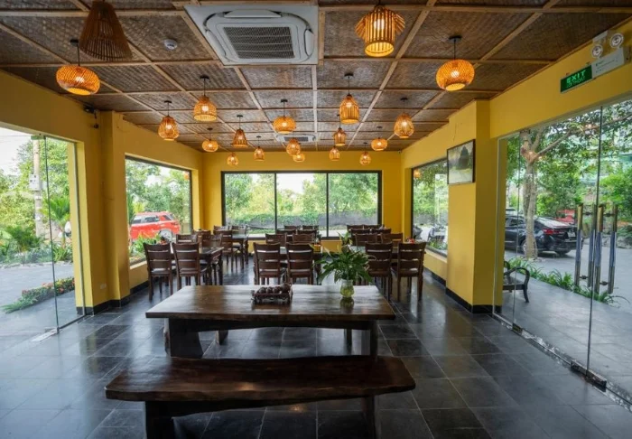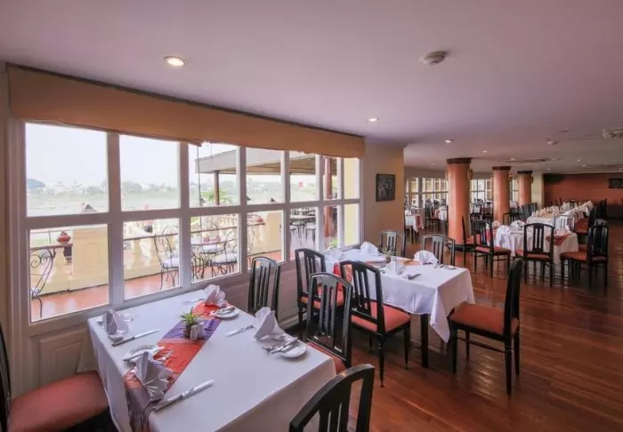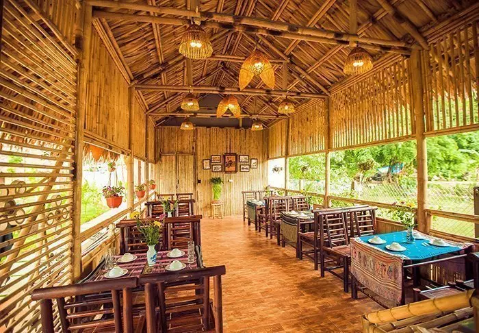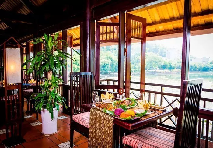 Lodgen ravintolan ruokalista perustuu paikallisiin raaka-aineisiin ja sisältää perinteisiä vietnamilaisia ruokia, joissa käytetään paikallisia tuoreita yrttejä, kalaa ja hedelmiä. Monet aineksista saadaan suoraan hotellin omasta puutarhasta, ja aterioidessasi voit nauttia näkymistä joelle, kun aurinko laskee hitaasti palmujen taakse.