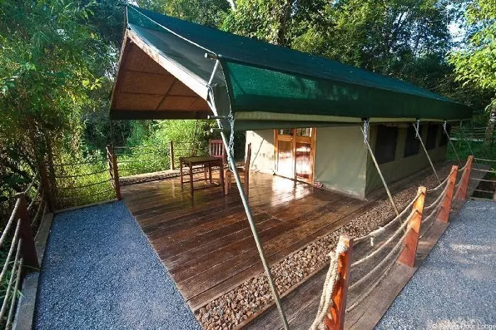 Yöpyminen tapahtuu luksusteltoissa, jotka on erityisesti suunniteltu trooppisiin oloihin. Teltat on rakennettu puisille korokkeille maanpinnan yläpuolelle, ja niistä on upeat näköalat Ben Cu -koskelle. Teltat on yhdistetty toisiinsa ja päärakennukseen kulkusilloilla. Kaikissa teltoissa on joko kaksoissänky tai kaksi yhden hengen sänkyä, oma kylpyhuone, minibaari, tuuletin ja ilmastointi. Kunkin teltan edessä on viihtyisä parveke, josta on mukava ihastella vaikka auringonnousua ja kuunnella gibboniapinoiden kutsuhuutoja.