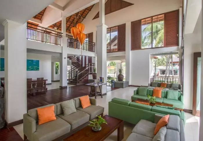Lomakeskus on rakennettu eleganttiin ranskalaiseen siirtomaa-ajan tyyliin, ja sitä ympäröivät trooppiset puutarhat. Ranskalainen tyyli näkyy myös resortin kauniisti sisustetuissa huoneissa, joita on kaikkiaan 70. Huoneissa on WiFi, ilmastointi, tallelokero, TV, jääkaappi, minibaari ja teen- ja kahvinkeittovälineet sekä kylpyhuone. Parvekkeelta avautuu kaunis näköala puutarhaan.