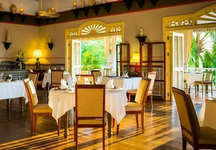 Lomakeskukseen kuuluu kaksi ravintolaa. The Pepper Tree on pääravintola ja Le Jardin on ulkoilmaravintola, josta on upeat näköalat merelle. Täällä voit nauttia aamiaisen, iltapäivän välipalan tai raikkaan juoman auringonlaskua ihastellen. Auringon laskettua aukeaa loungebaari, jossa on tarjolla erilaisia värikkäitä drinkkejä.