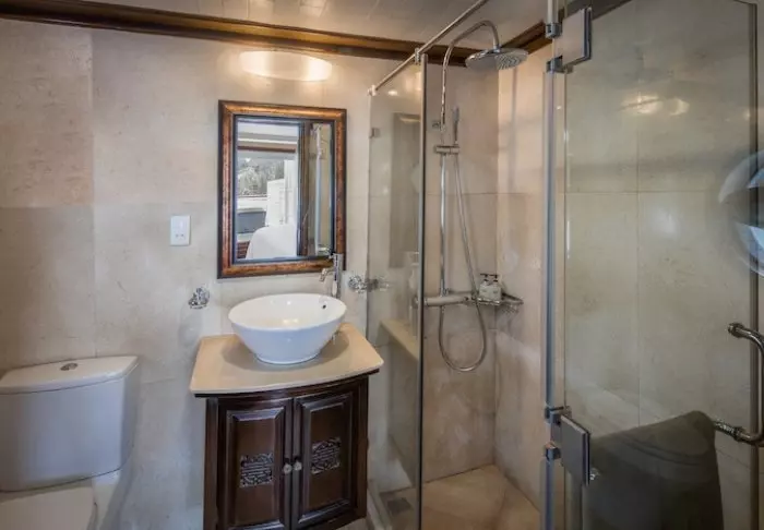 Aluksella on vain 16 hyttiä, mikä luo kodikkaan ja rennon tunnelman, jossa on runsaasti tilaa rauhoittua ja olla läsnä. Majoitut lähtökohtaisesti Balcony Deluxe -hytissä, joka sijaitsee ensimmäisellä kannella ja jossa on oma parveke, jolta avautuu näkymä lahdelle. Hytti on tyylikkäästi sisustettu tummilla puumateriaaleilla ja hienoilla klassisilla yksityiskohdilla, ja tunnelma on lämmin ja kutsuva. Suurista ikkunoista tulvii valoa, ja luonto on kuin osa huonetta – heräätpä sitten veden yllä orastavaan aamuun tai nautit päivän viimeisistä auringonsäteistä illan hämärtyessä. Hytissä on parivuode tai kaksi erillistä vuodetta, ilmastointi, minibaari, tallelokero ja työpöytä sekä oma kylpyhuone, jossa on suihku ja hygieniatuotteita. Tämä on rauhallinen tukikohta, jossa mukavuus ja tunnelma kulkevat käsi kädessä. Oma parveke kutsuu nauttimaan lahden maisemista – aloitatpa päivän kupillisella kahvia tai annat illan laskeutua samalla, kun valo vaihtaa sävyä kallioiden ja veden yllä.