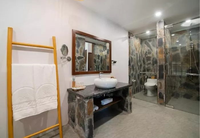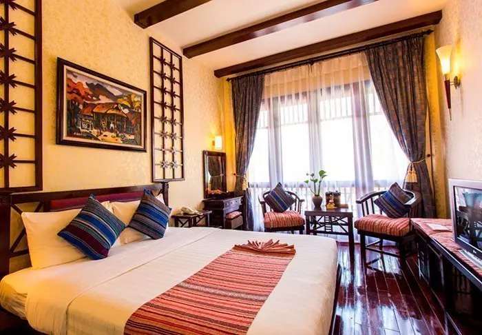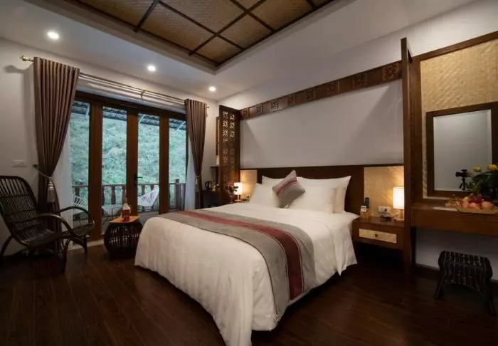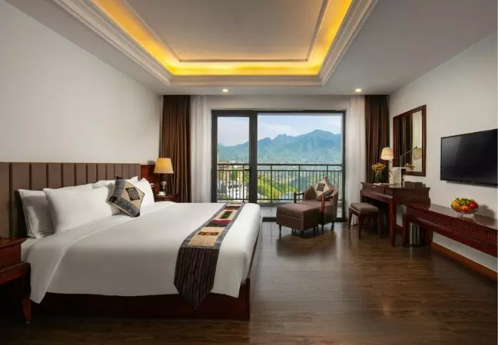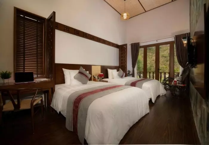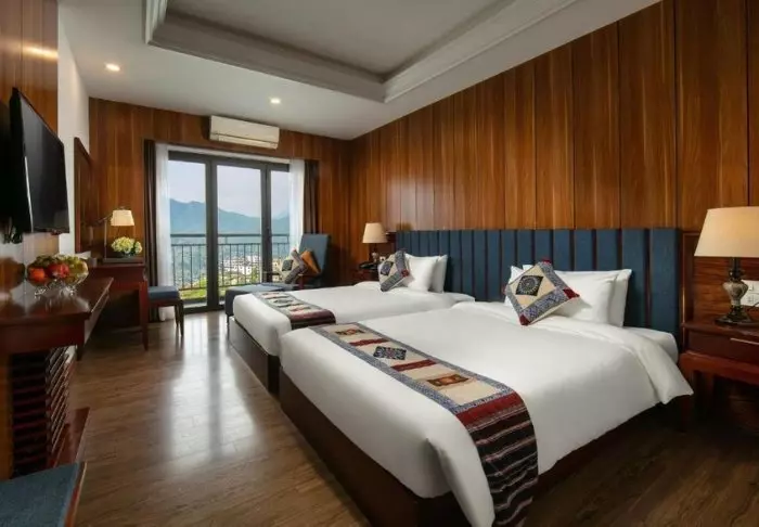 Huoneita on yhteensä 104, ja ne on sisustettu kauniisti perinteiseen vietnamilaiseen tyyliin tummilla puukalusteilla. Vieraiden käytössä on kaikki tarvittavat mukavuudet: WiFi, ilmastointi, tallelokero, TV ja oleskelualue. Kylpyhuoneesta löytyy suihku, ilmaisia kylpytuotteita, hiustenkuivaaja, kylpytakit ja tohvelit. Useimmissa huoneissa on myös isot ikkunat, joista avautuu hieno näköala Sapan kauneimpiin maisemiin.