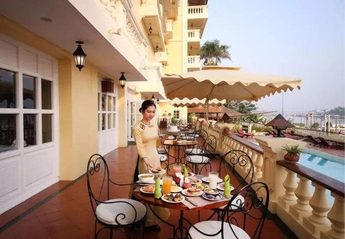 Ravintola Le Comptoir de Marthe et Edouard on nimetty omistajan isovanhempien mukaan, ja siellä vietnamilaisen ja ranskalaisen keittiön yhdistyvät parhaalla mahdollisella tavalla. Keittiömestari Vo Quoc Thach vastaa ruokalistasta, jossa paikalliset raaka-aineet yhdistyvät klassiseen ranskalaiseen osaamiseen. Voit nauttia ruoasta terassilla joen äärellä samalla, kun aurinko laskee horisonttiin.