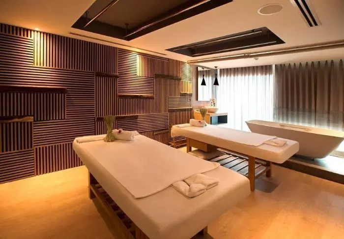 Hotellin modernilla kuntosalilla voit myös ylläpitää kuntoilurutiiniasi. Siellä on laaja valikoima laitteita ja painoja. Jos tarvitset lisähemmottelua, voit käydä hotellin kylpylässä ja hyvinvointikeskuksessa, jossa on tarjolla valikoima rentouttavia hoitoja.