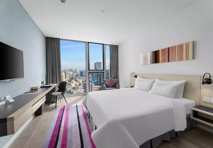 Päivän päätteeksi kannattaa nousta hotellin omaan kattobaariin. Twilight Sky Barissa on mukava siemailla virkistävä cocktail tai kaksi ja nauttia henkeäsalpaavista panoraamanäköaloista valaistuihin pilvenpiirtäjiin.